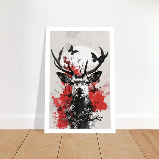 Moderne Hirsch Kunst mit Schmetterlingen und Blumen - Poster