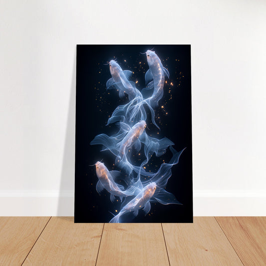 Yin und Yang - Koi-Tanz auf Grau Poster
