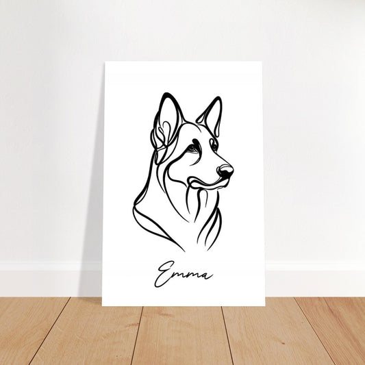 One Line Deutscher Schäferhund mit Wunschtext - Poster