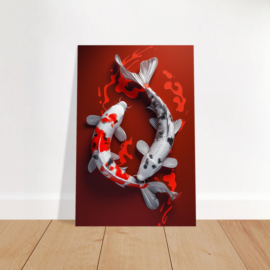 Yin und Yang - Koi-Tanz auf Rot Poster